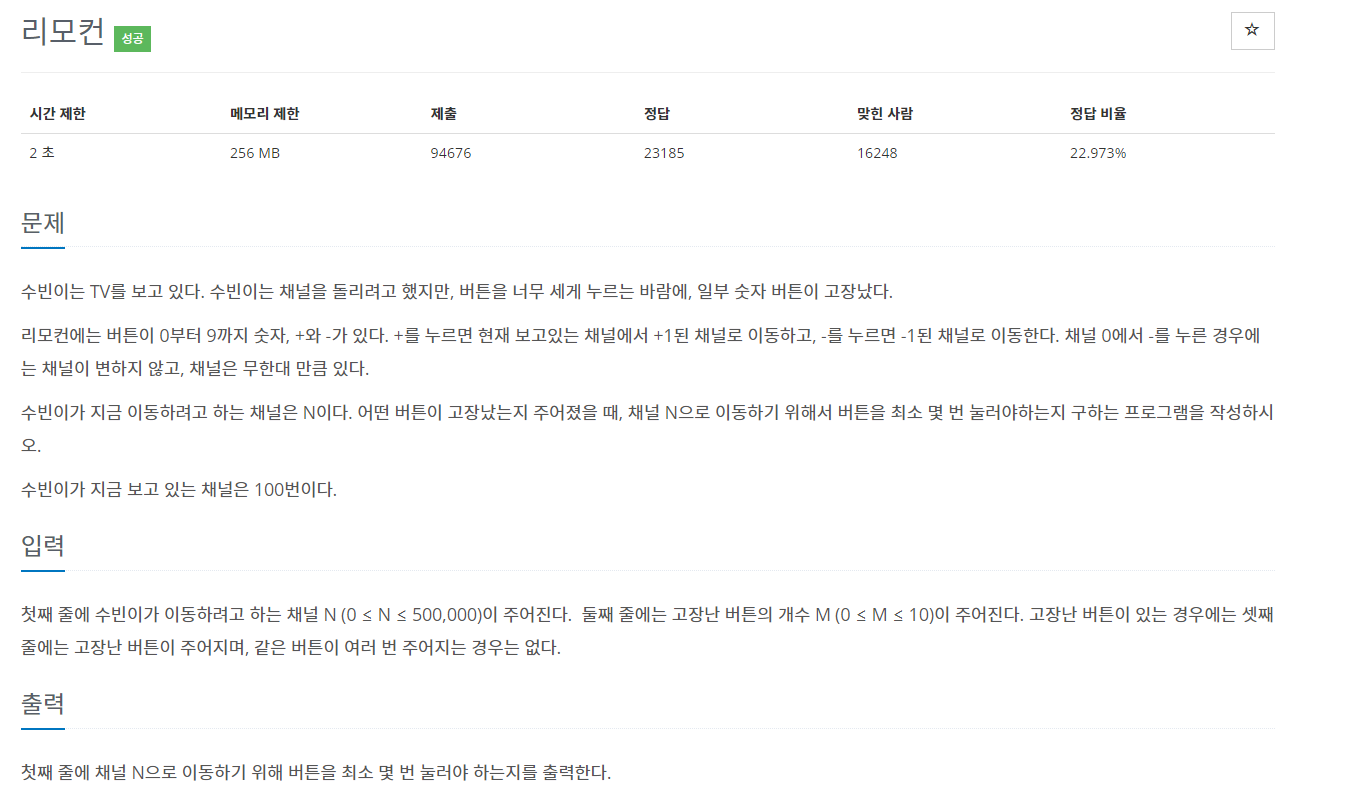 1107번: 리모컨